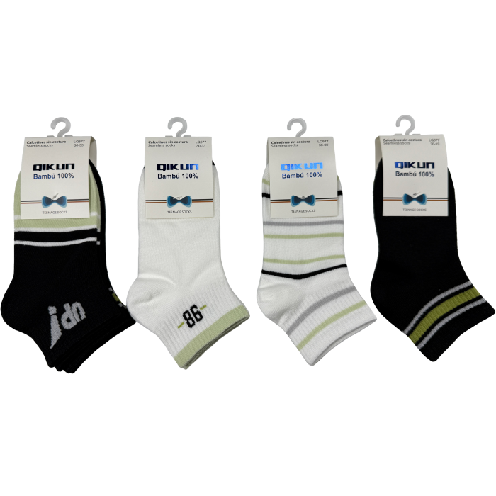 12 Pares Calcetines Juvenil Corto Sin Costuras Bambú LQ577